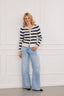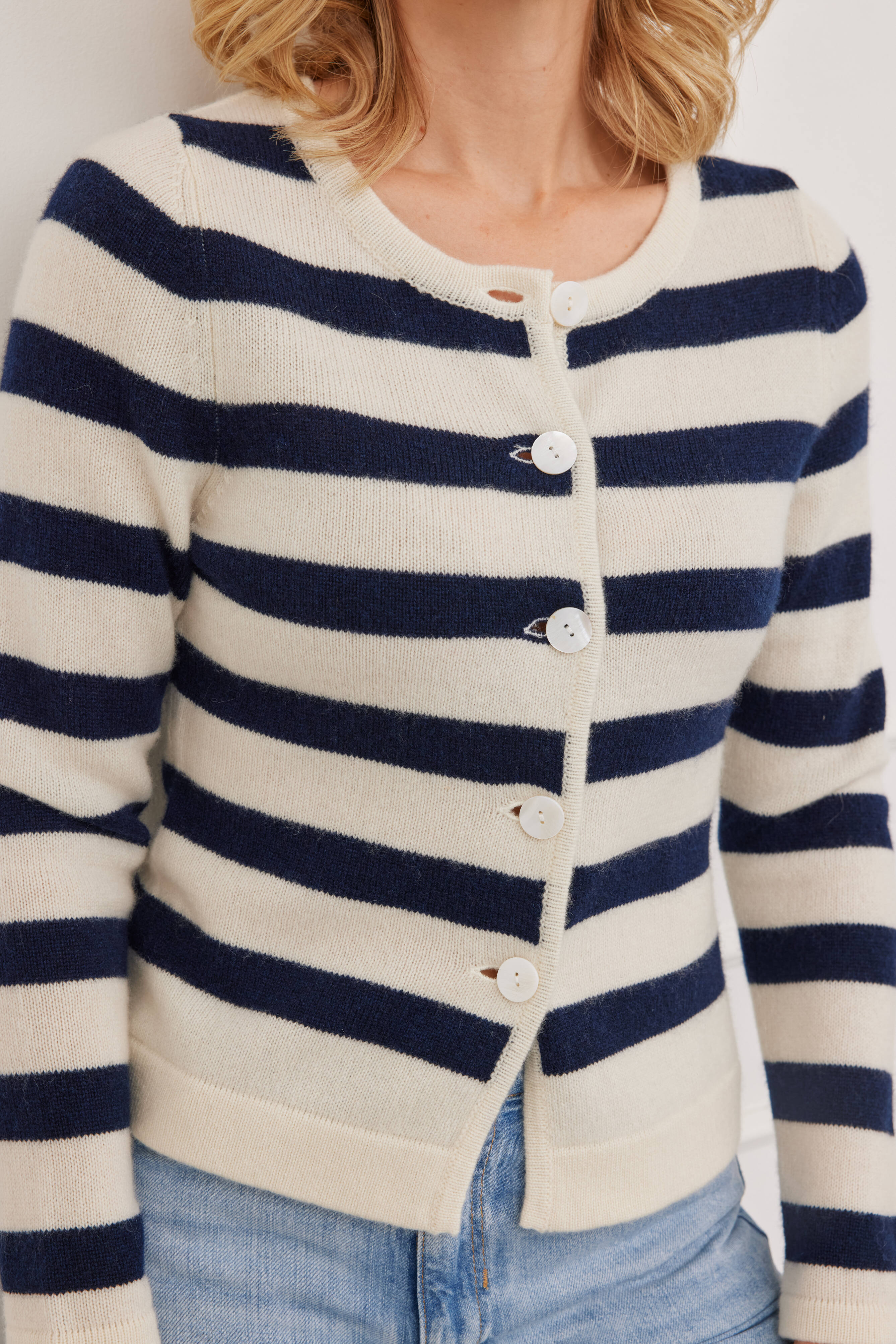 This elegant cardigan made from 100% pure cashmere offers unparalleled comfort and a luxurious feel. The round neck gives it a sophisticated touch, while the striped design ensures a modern and trendy look.