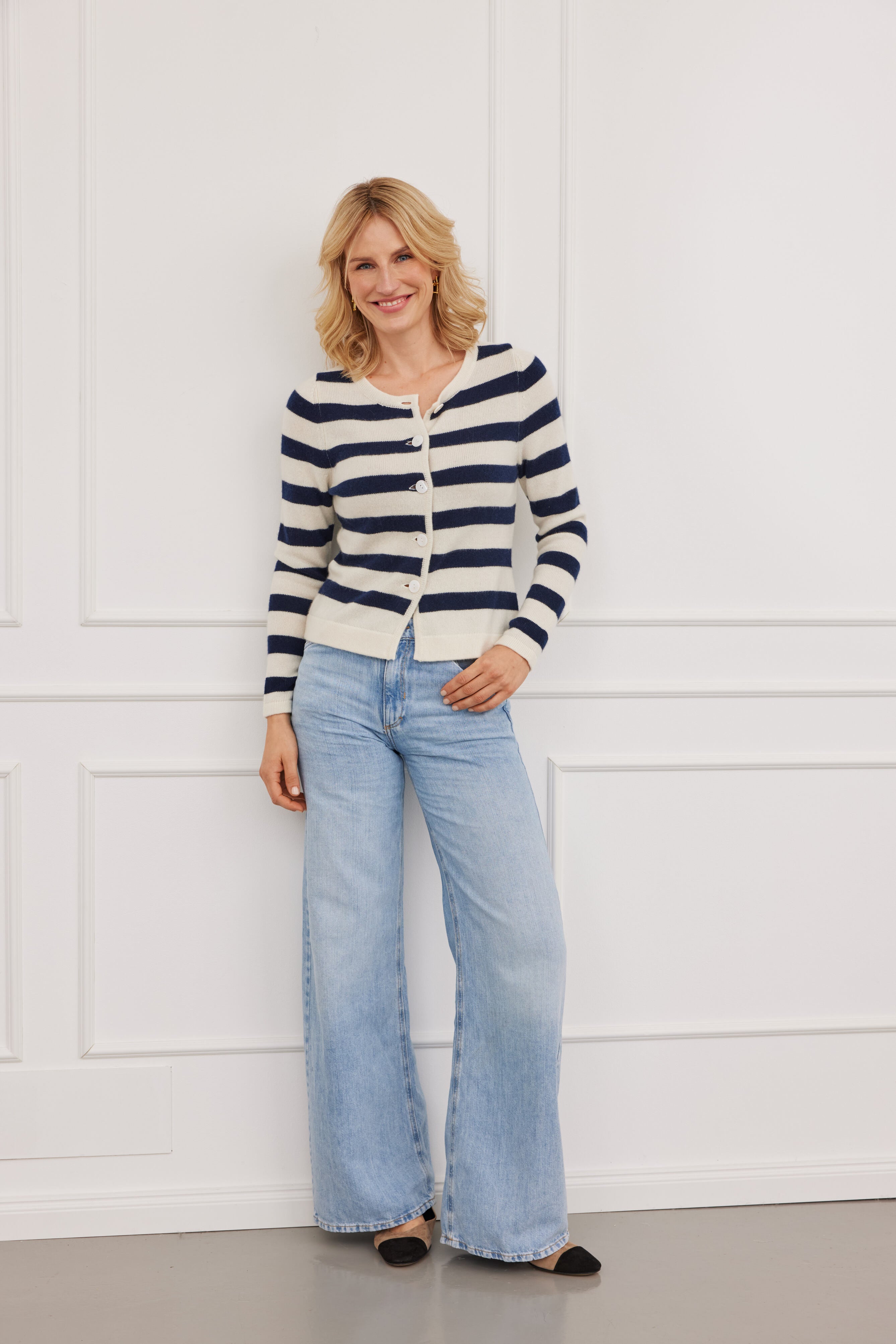 • Casual look: Wear the Alva cashmere cardigan with jeans and sneakers.