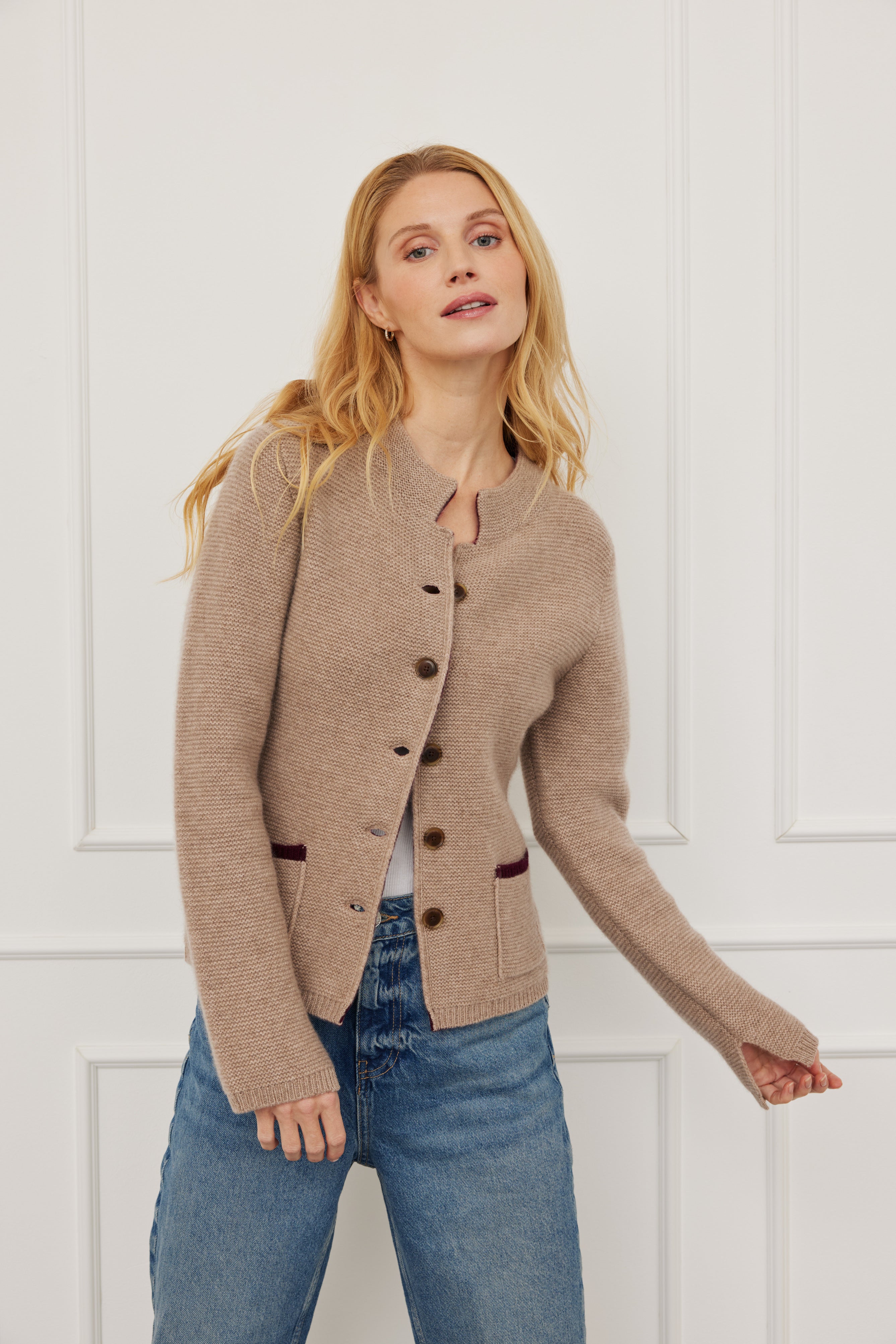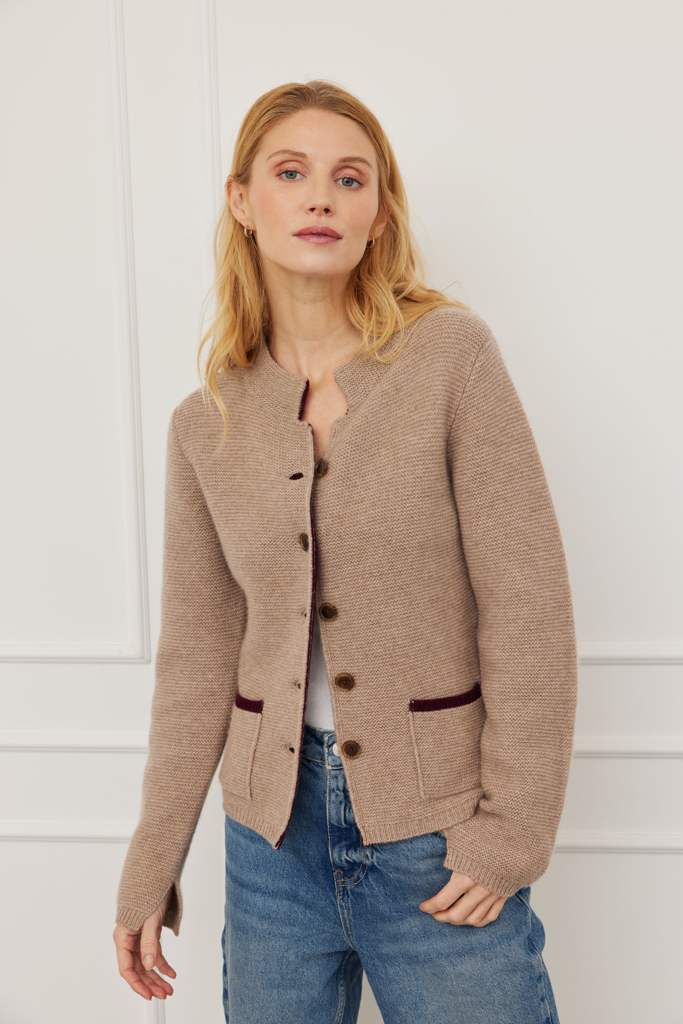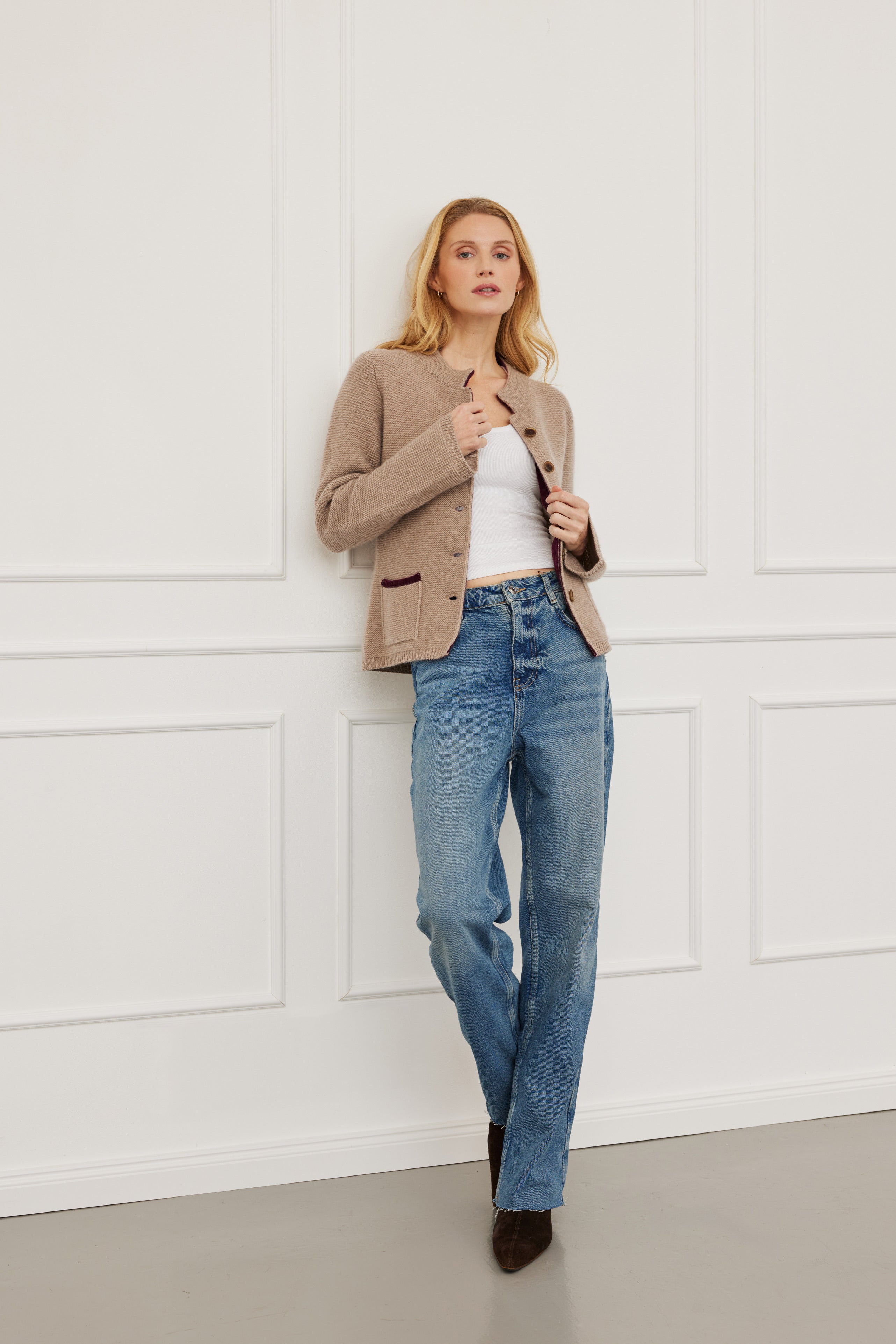 Cashmere Jacke „Tony“ – Taupe | Klassik trifft auf modernen Farbakzent