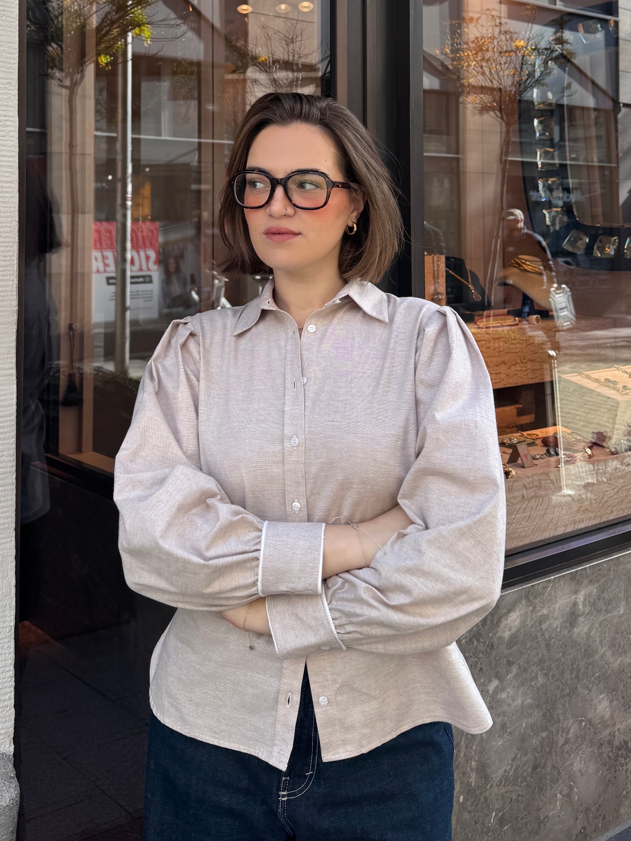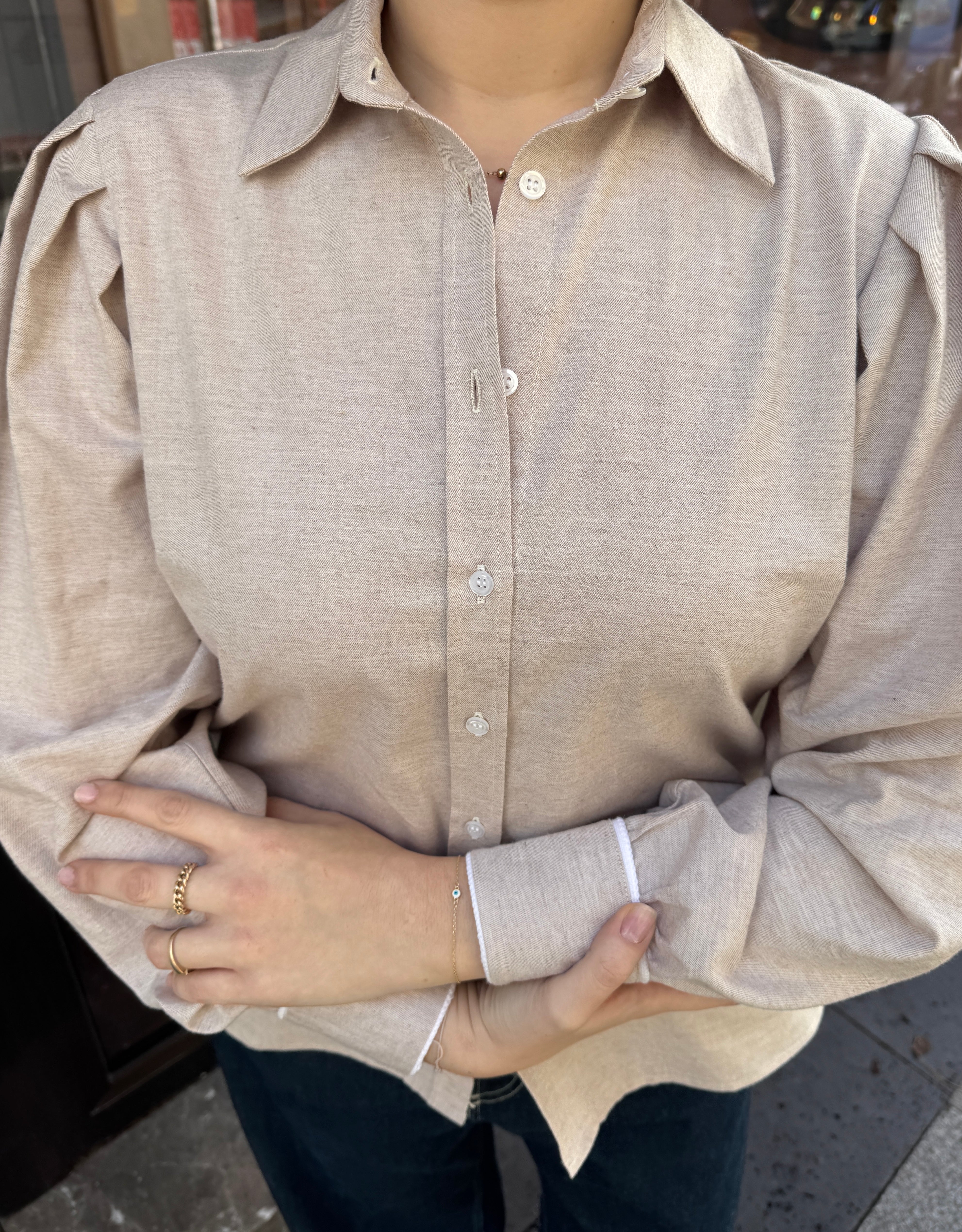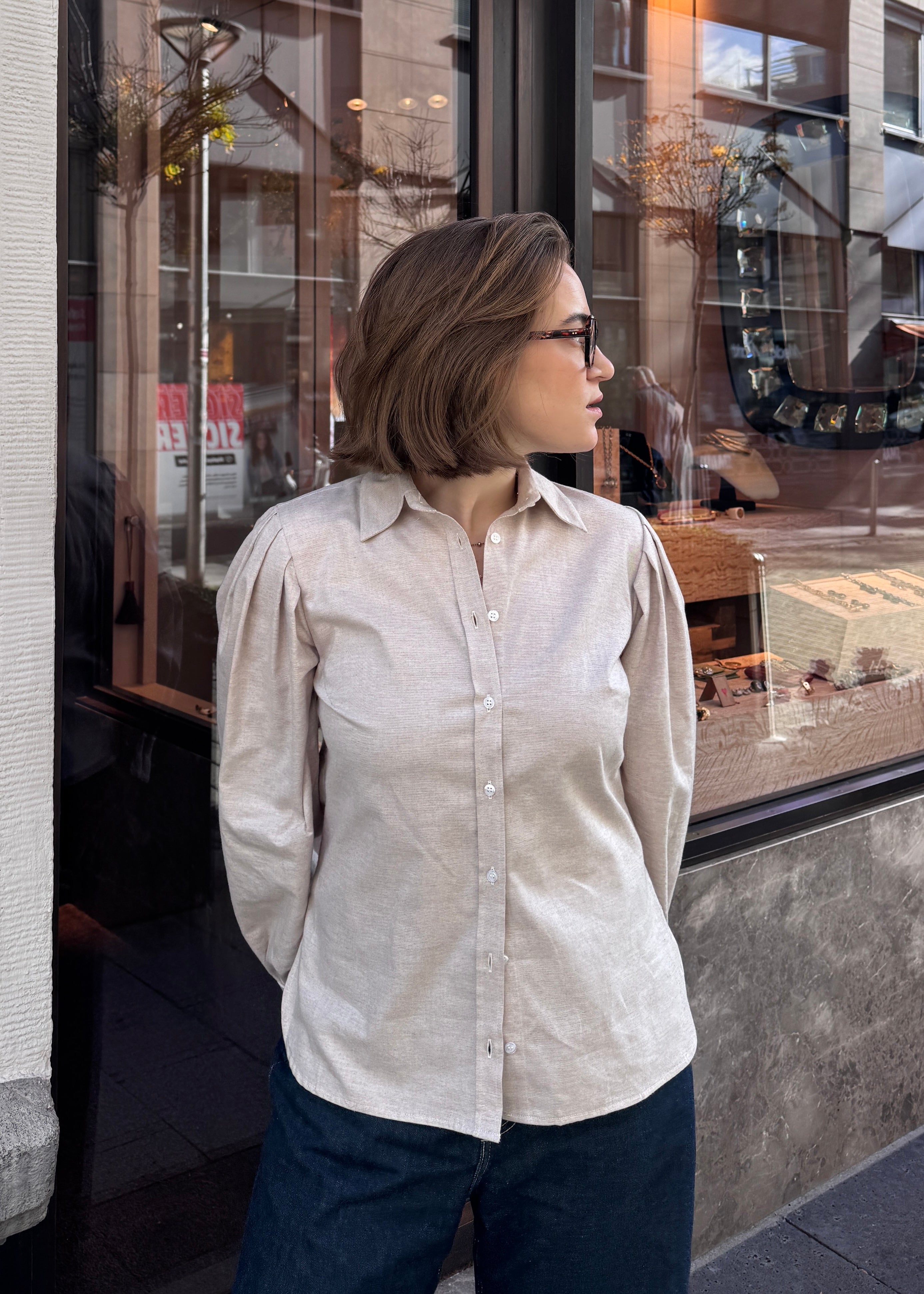 Bluse „Elena Twill“ – elegante Leichtigkeit in edlem beige