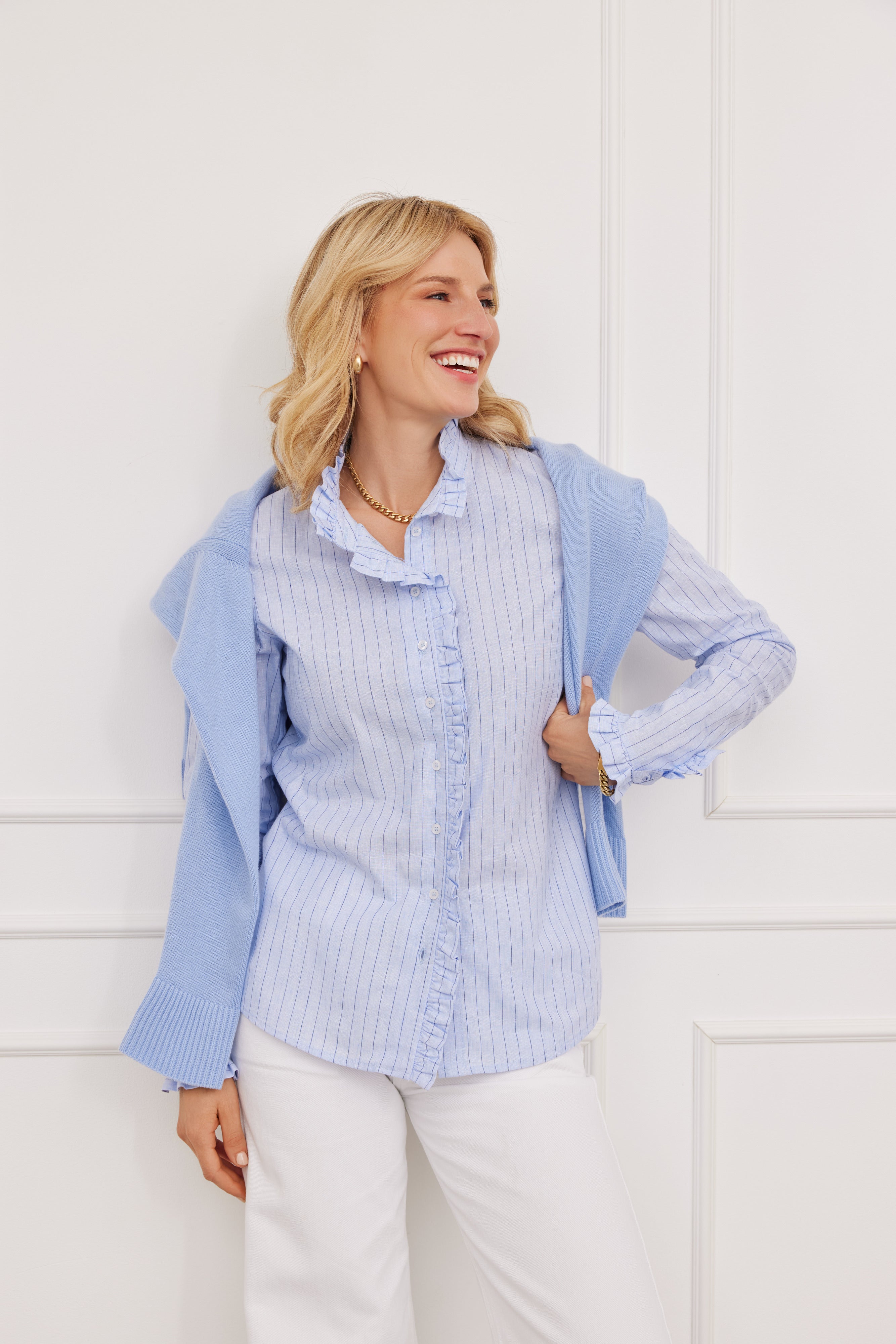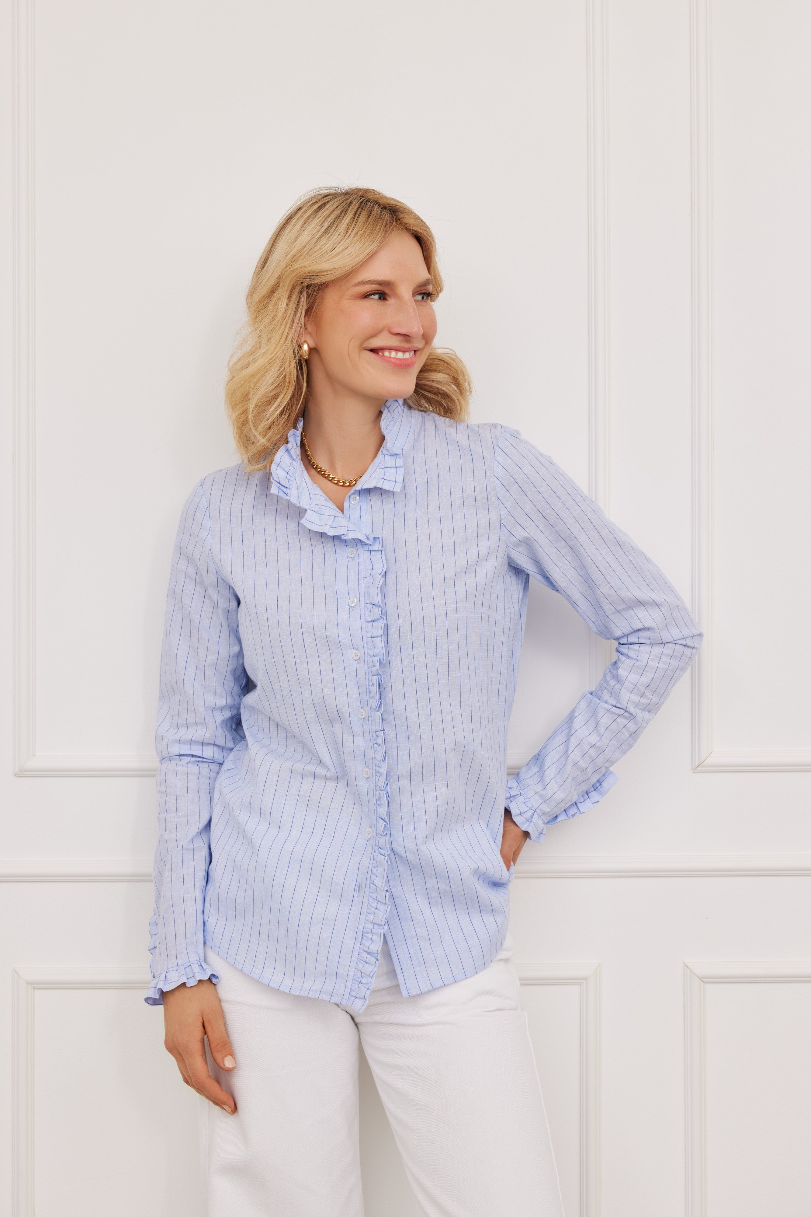 Bluse „Singaraja Stripes Blau“ – Klassisch, klar & kombinationsstark