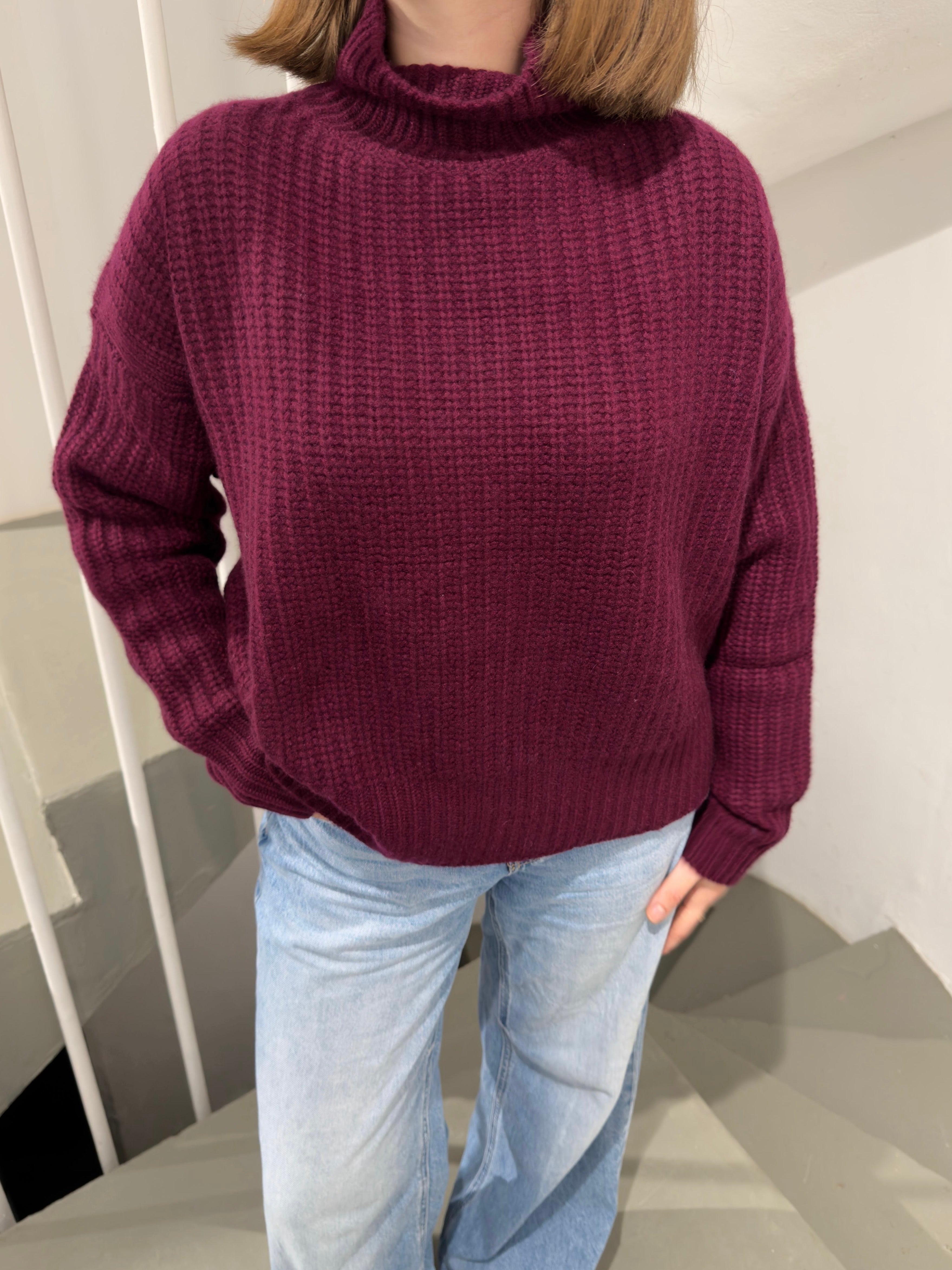 Cashmere Pullover „Tara“ – Bordeaux | Luxuriöser Rollkragen für kalte Tage